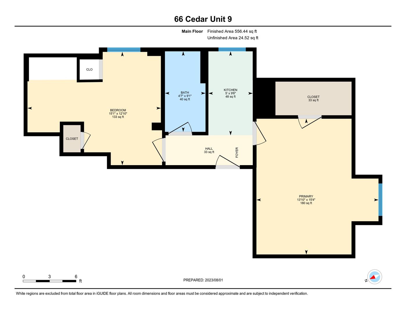 One bedroom, one bathroom unit