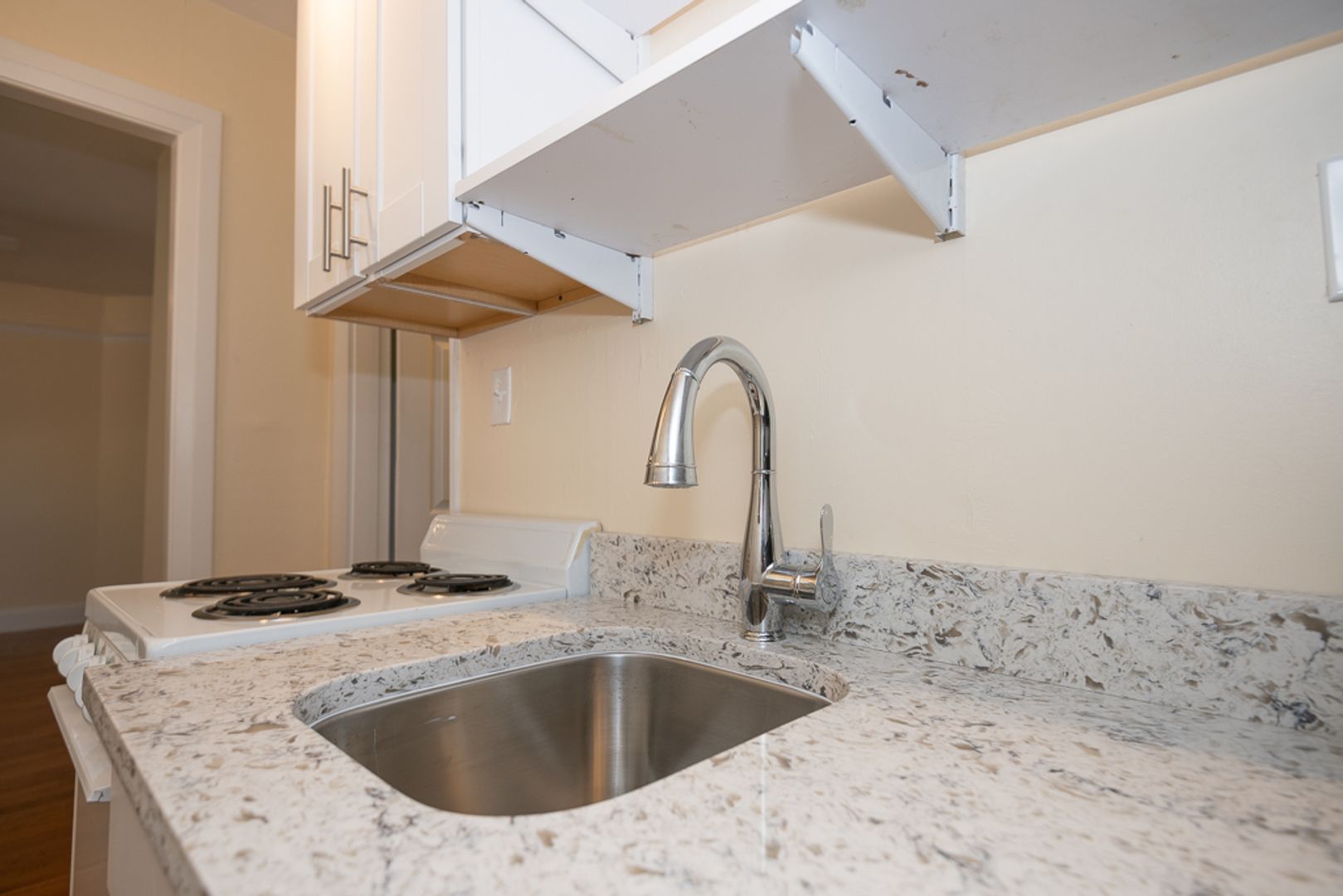 Newly renovated kitchen and bathroom with contemporary finishes